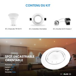 30 Focos LED Blancos, empotrables y direccionables con GU10 7W 4500K Blanco neutro