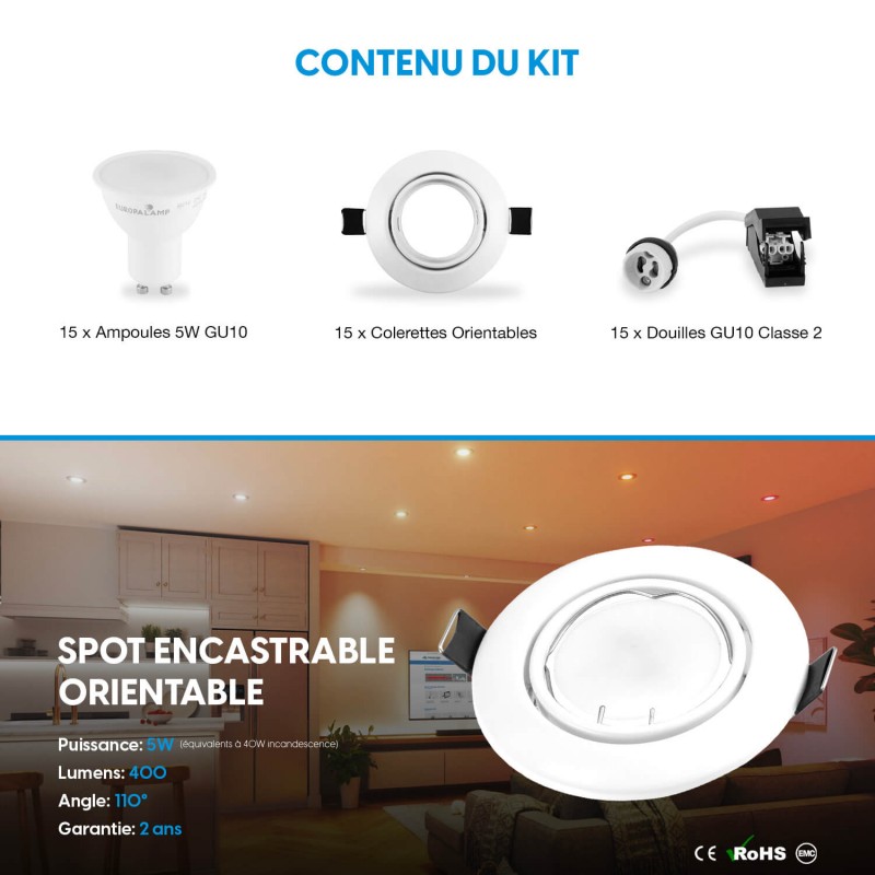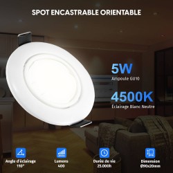 15 Focos LED Blancos, empotrables y direccionables con GU10 5W 4500K Blanco neutro