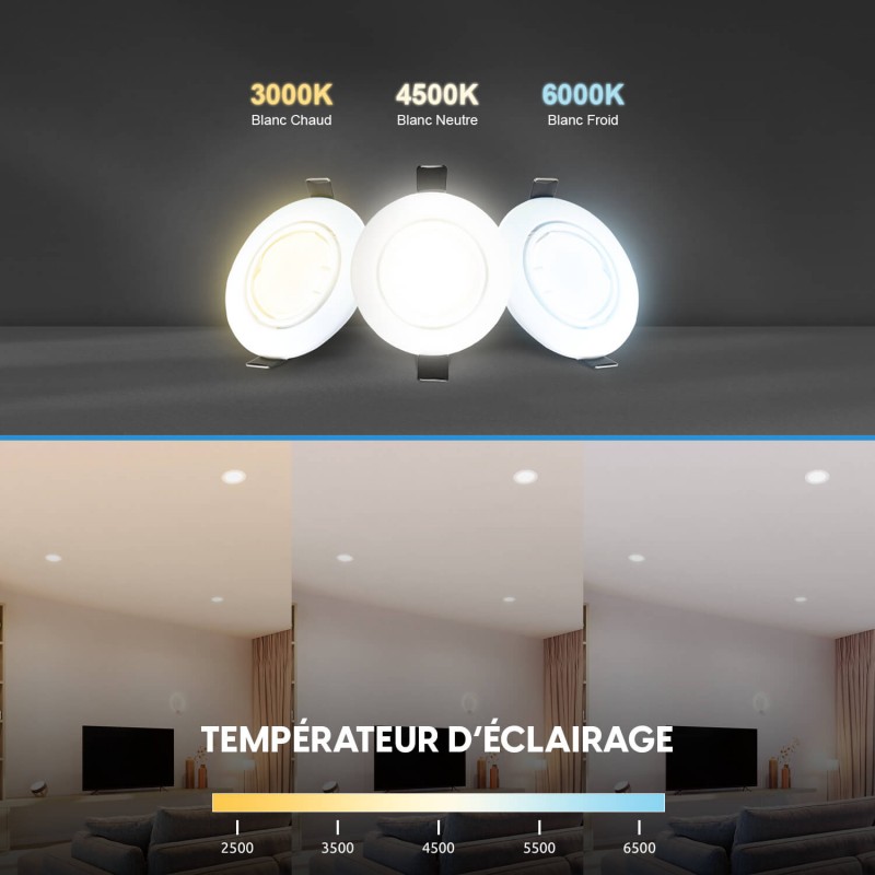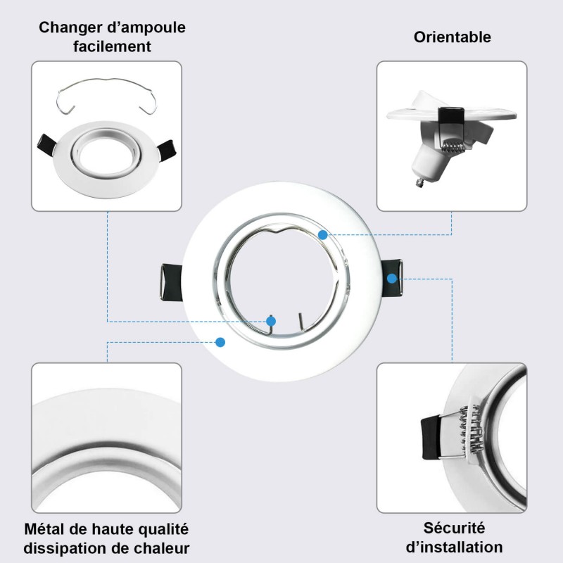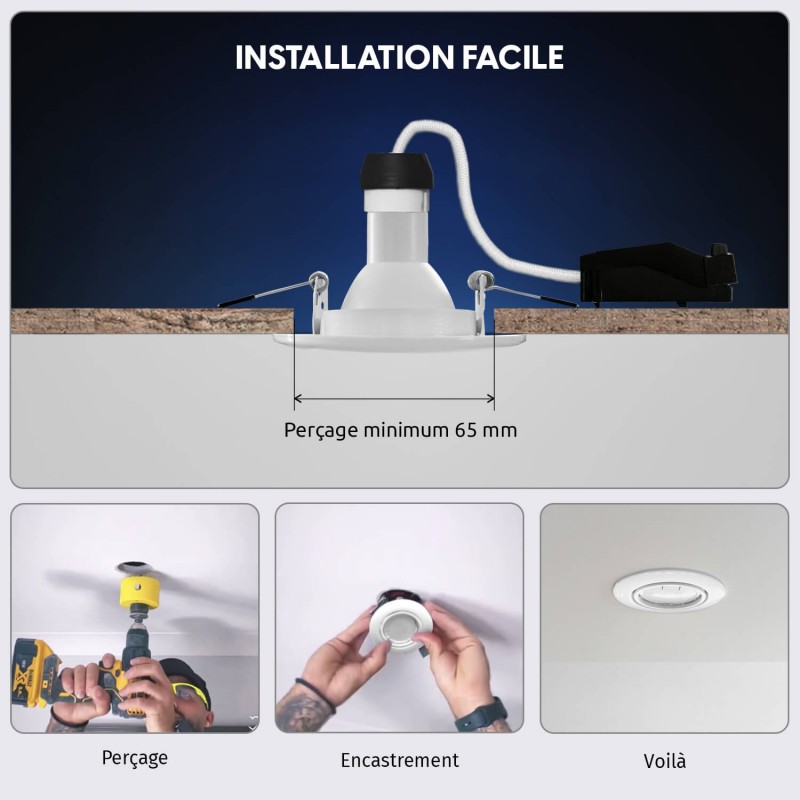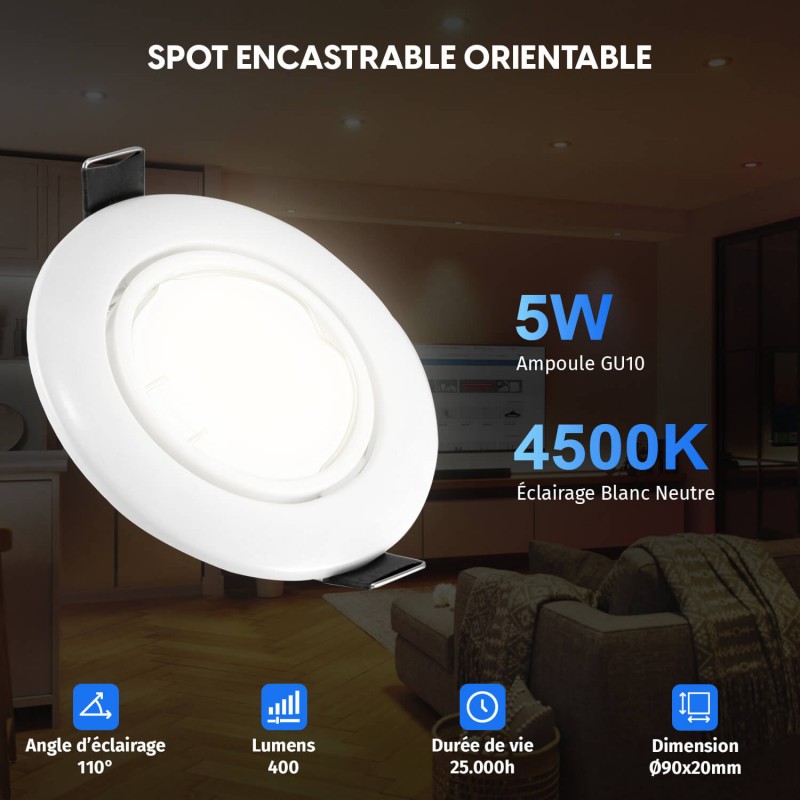 Proyector incorporado kit completo + bombilla led GU10 blanco neutro 4000 k + zócalo GU10 smd automático de clase 2