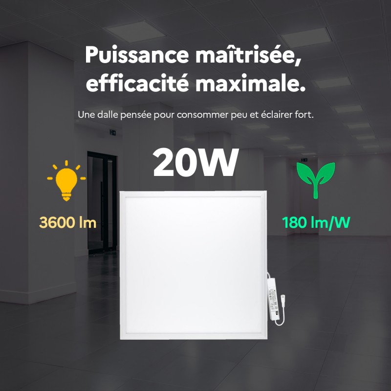 10 Dalles LED 20W - 3 Températures de couleurs – 3600 lm