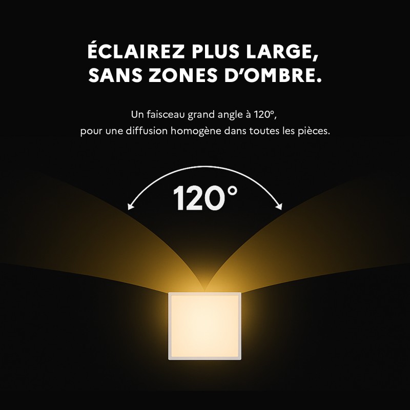 ◉ Grand angle d’éclairage 120° – sans zones d’ombre