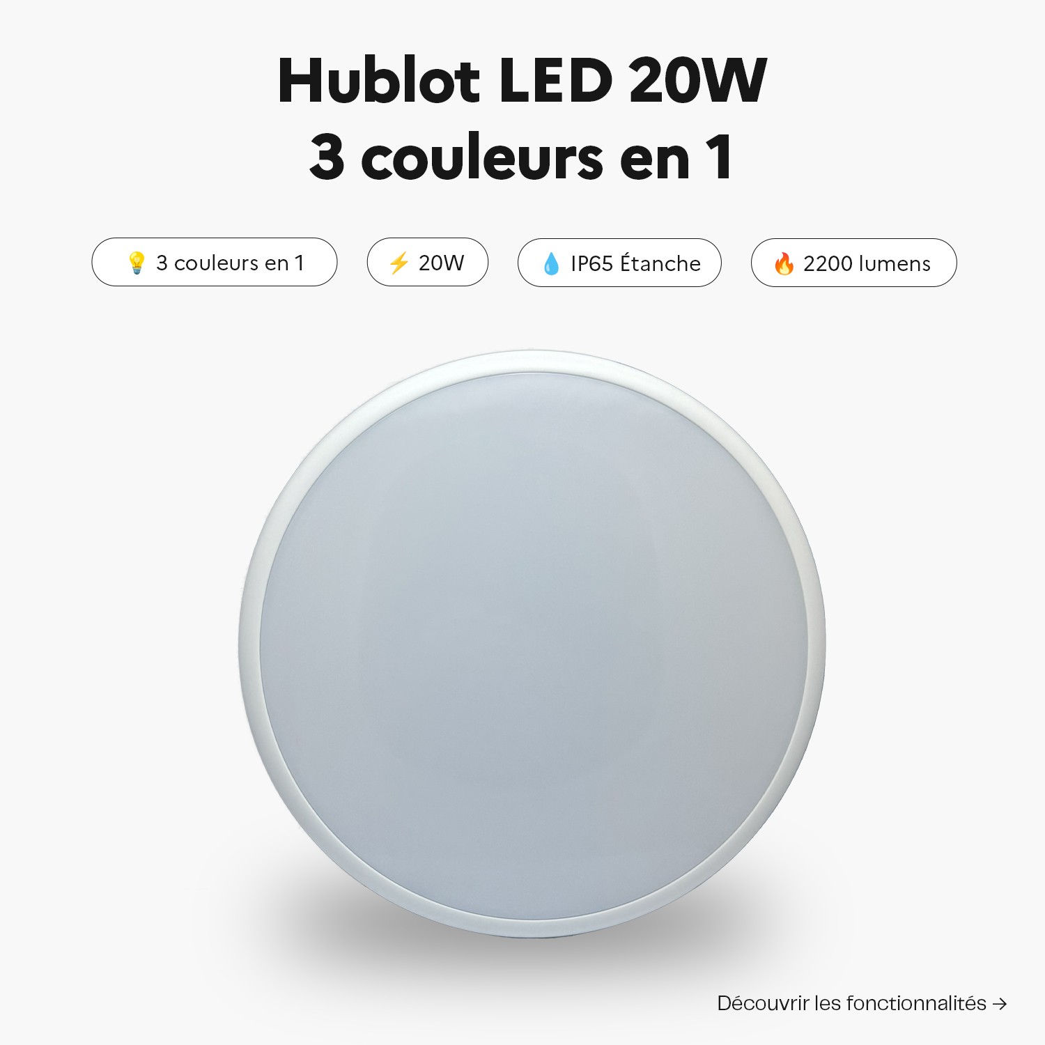 Hublot LED 20W – 3 Couleurs en 1 (3000K / 4000K / 6000K) | 2200 Lumens | IP65 Étanche