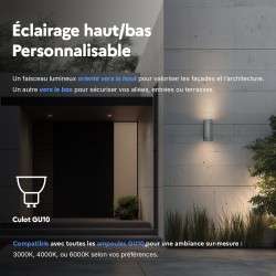 Éclairage double faisceau haut/bas : Valorisez vos façades et sécurisez vos allées grâce à un faisceau lumineux orienté vers le haut et vers le bas.