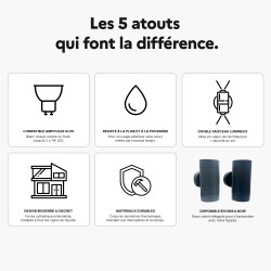 Compatible avec toutes les ampoules GU10 : choisissez votre teinte (3000K, 4000K ou 6000K) selon l’ambiance souhaitée.